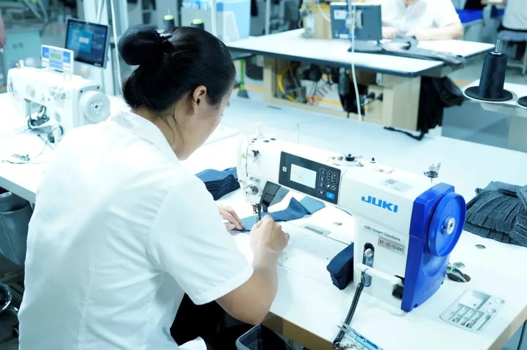 雅戈尔服装生产车间,通过自动分配生产,可显著减少配对的时间成本,单工位生产效率提高25%