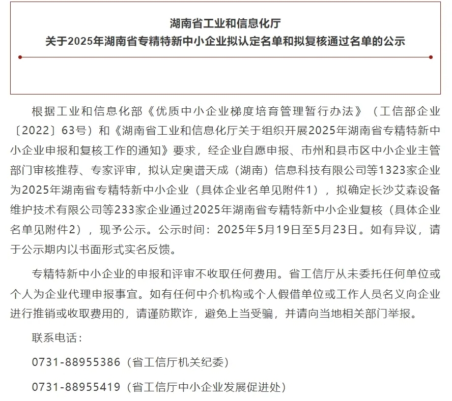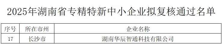 近日,湖南省工信厅发布2025年度湖南省专精特新中小企业复核通过名单,湖南华辰智通科技有限公司凭借在工业互联网领域卓越的技术创新能力、稳健的市场表现以及突出的行业贡献,成功通过”专精特新”企业复核认定!这一荣誉不仅是对湖南华辰智通过往努力与成果的高度认可,更是公司发展历程中的又一重要里程碑。